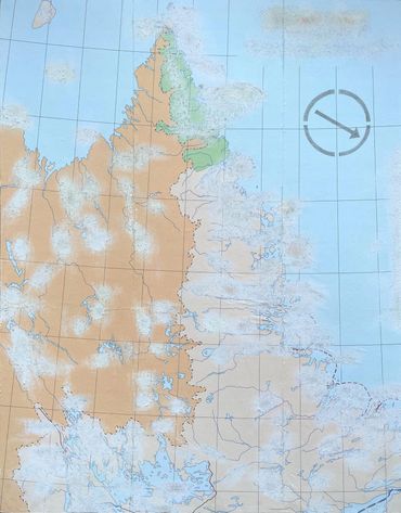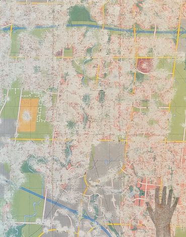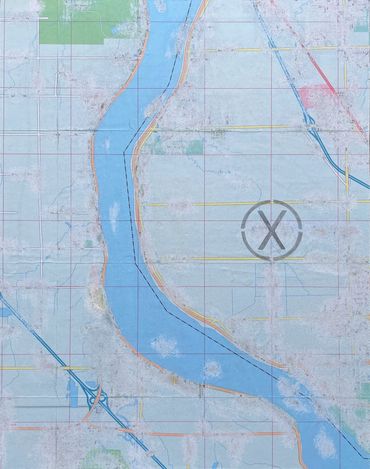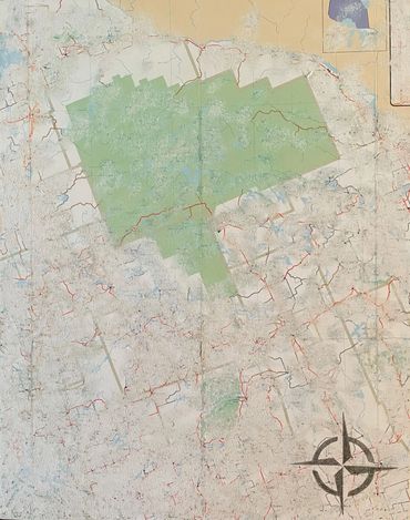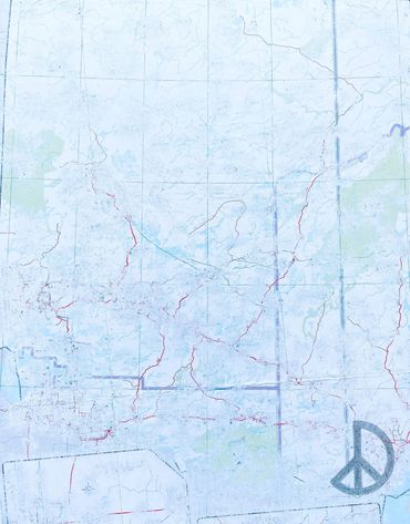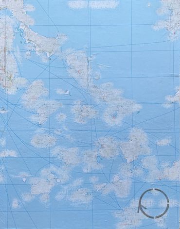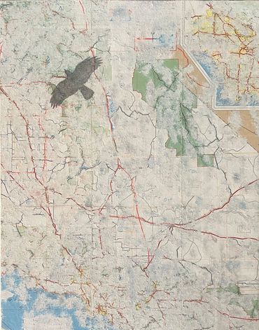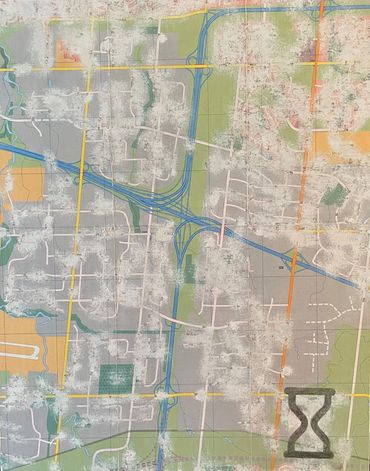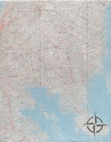This series was made using recycled road maps from which I removed all identifying names. In their original state, they provided clear directions. My “erasing” of these identifiers emphasizes the fact we don’t know exactly where we are going, how long it will take or if we are any closer to getting "there".